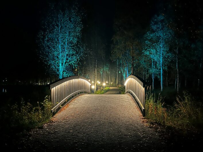 Kemijärven keskustan tuntumassa, Kuumalammen rannalla, on avautunut uusi Valometsä – elämyksellinen kävelyreitti, joka tuo valoa, väriä ja lämpöä talven hämärään. Reitti on lyhyt ja helppokulkuinen, joten se sopii mainiosti niin iltakävelylle kuin rauhalliseen pysähdykseen arjen keskellä.